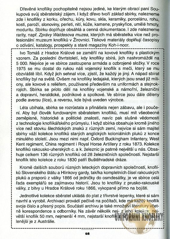 In 2005 I was asked to give an interview about the uniform buttons, within the show KLUBOVNA - everything for the collectors, on channel Praha ČRO 2 (28.2.2005)