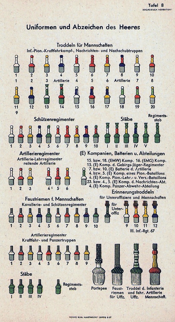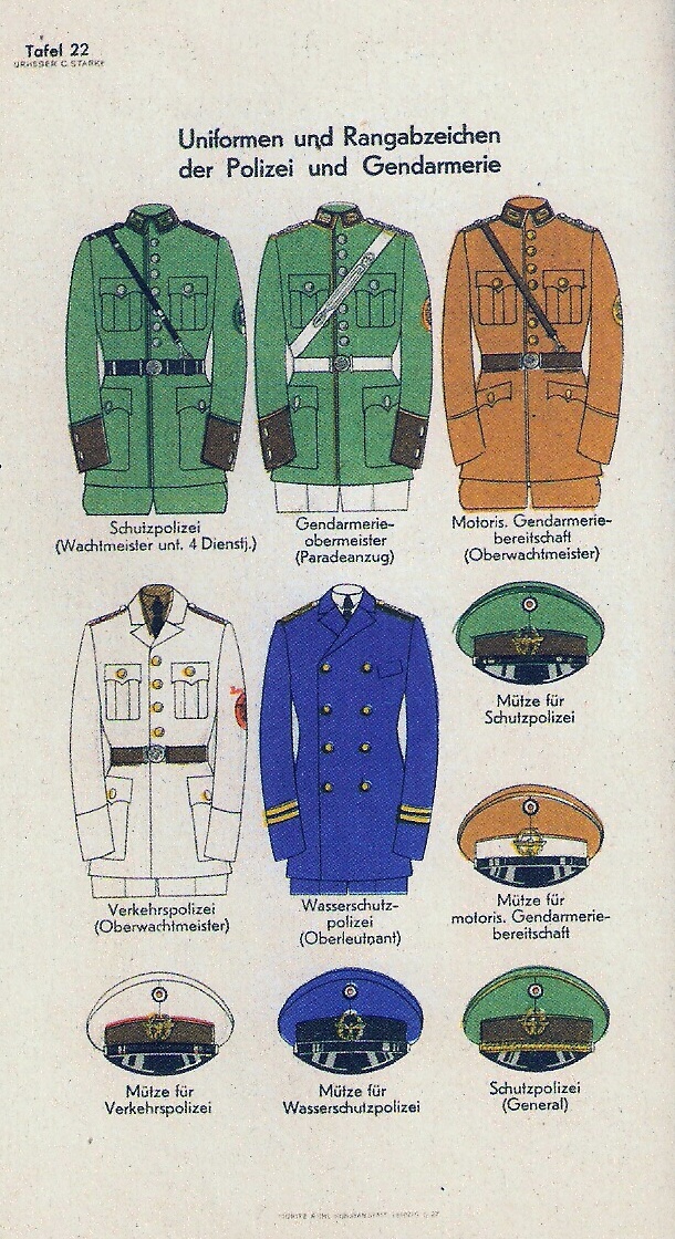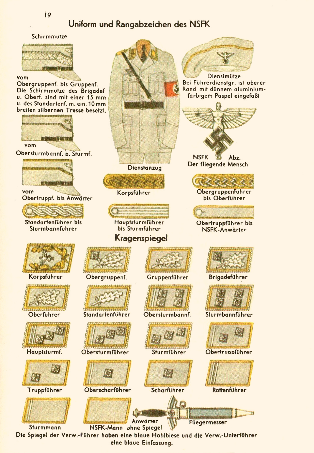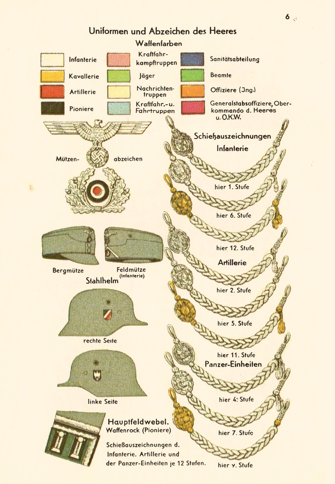 Jejím obsahem byly barevné kresby uniforem a označení všech nacistických polovojenských jednotek a armády.